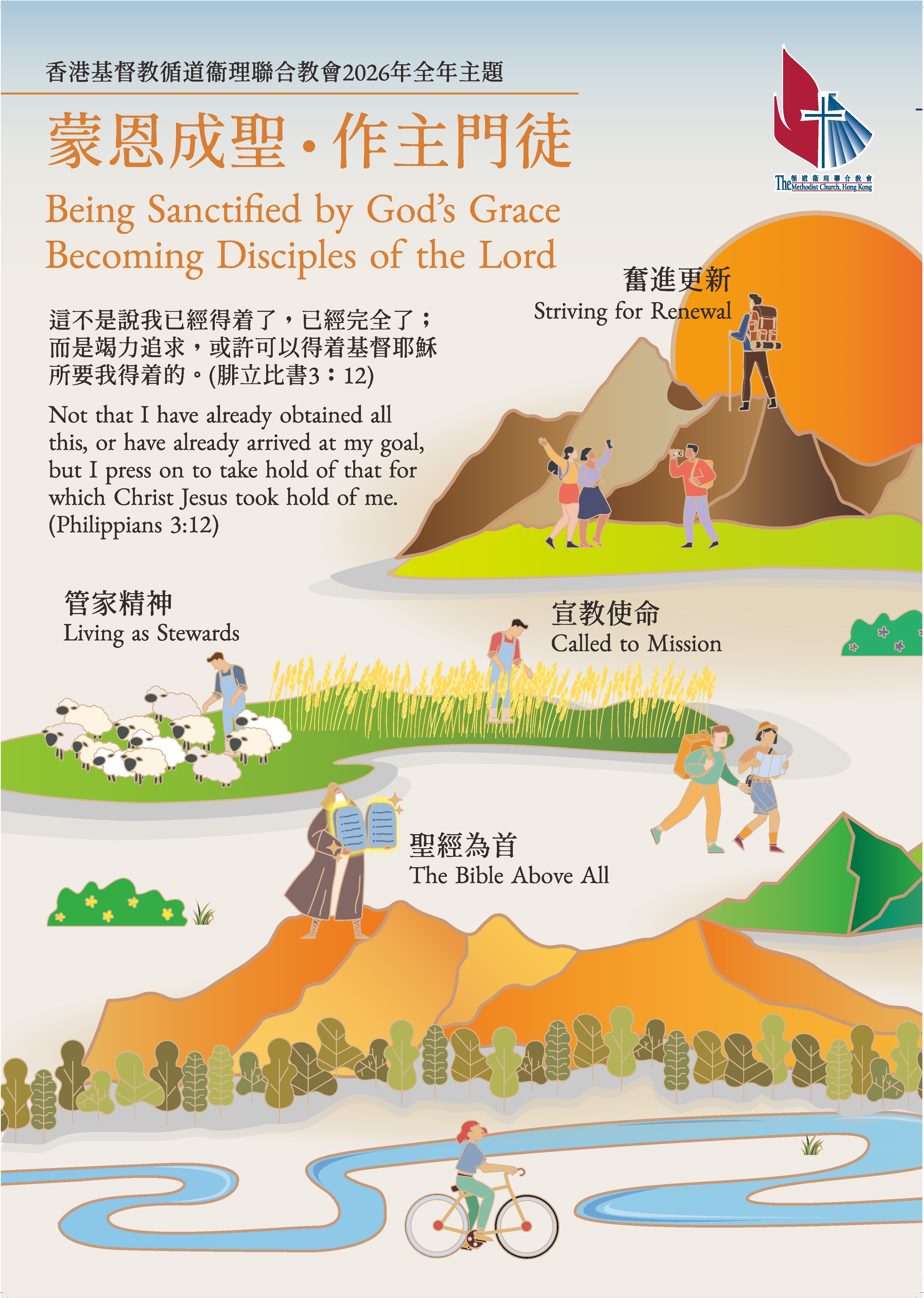 本會在2025年的總議會代表部會議已通過「門徒生命成長藍圖」,我們期望它能夠讓全體會眾今後對個人在生命成長上有清楚的目標和具體的計劃,是本會一個十分重要的方向,因此我們決定在2026年以「蒙恩成聖.作主門徒」為全年的主題,2027年及2028年亦會考慮繼續使用,盼望能更有效地落實這個新方向,請大家務必密切留意。