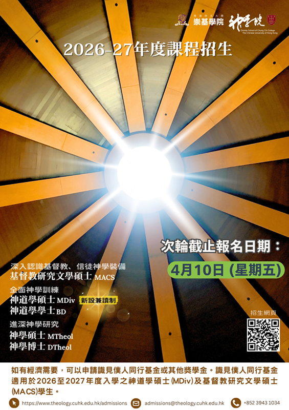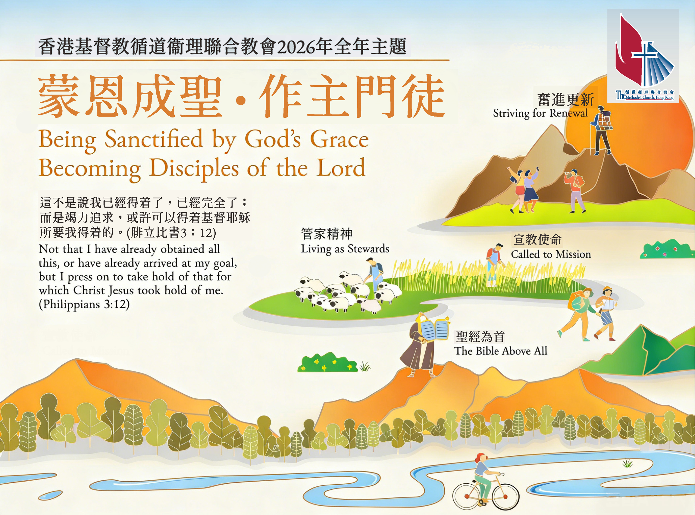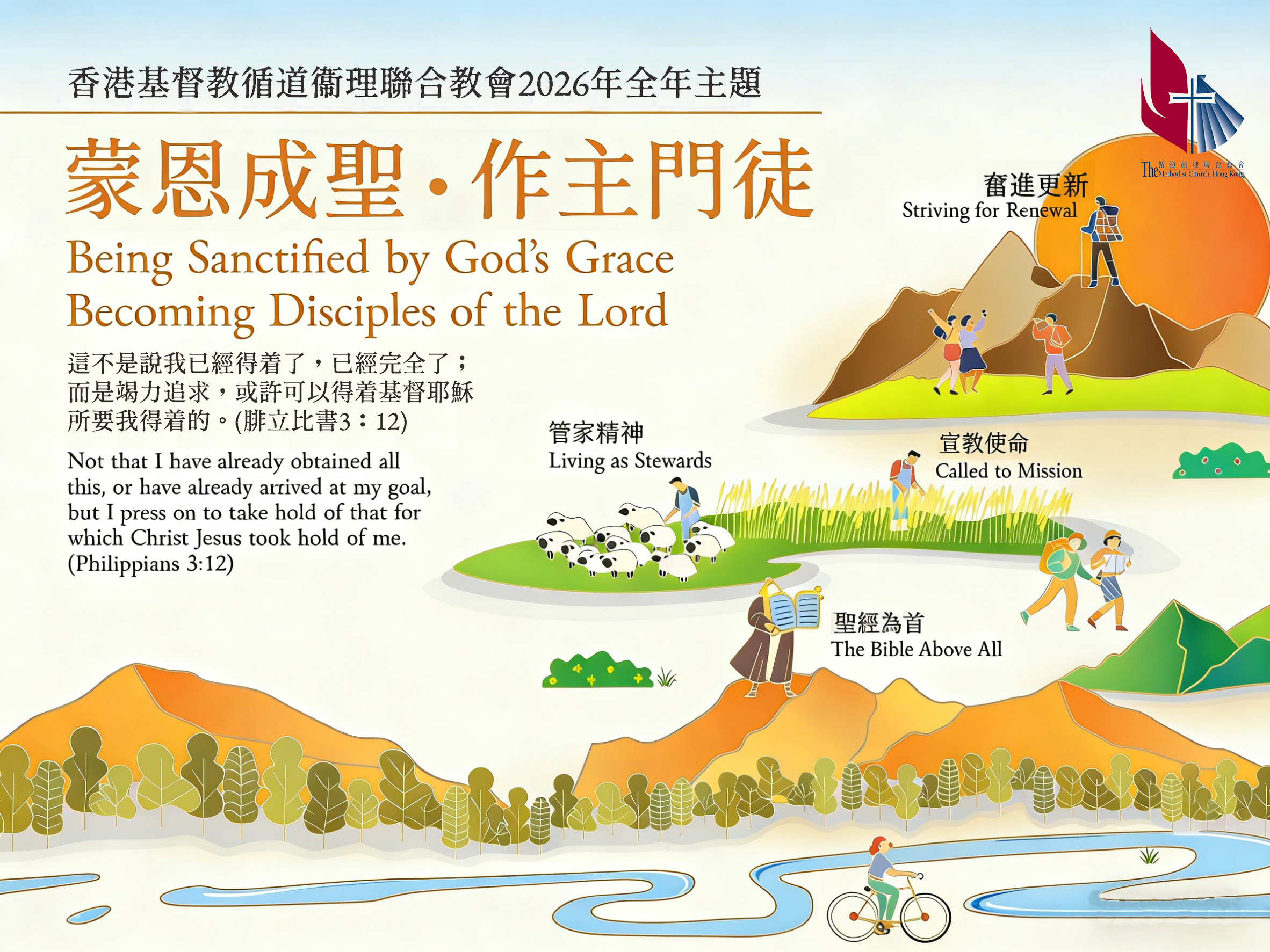 本會在2025年的總議會代表部會議已通過「門徒生命成長藍圖」,我們期望它能夠讓全體會眾今後對個人在生命成長上有清楚的目標和具體的計劃,是本會一個十分重要的方向,因此我們決定在2026年以「蒙恩成聖.作主門徒」為全年的主題,2027年及2028年亦會考慮繼續使用,盼望能更有效地落實這個新方向,請大家務必密切留意。
